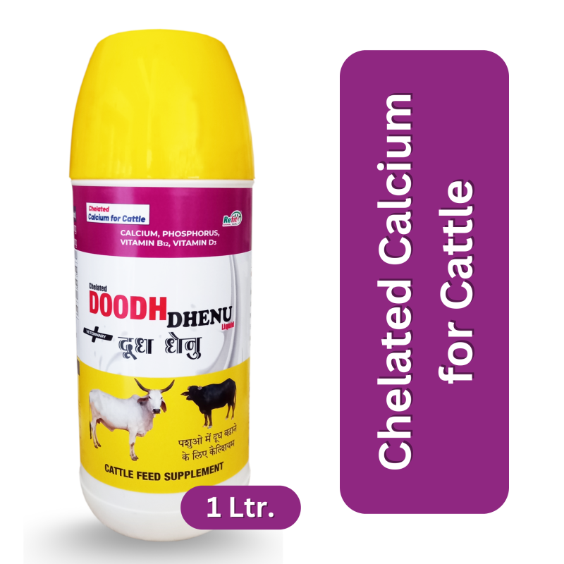 Chelated Liquid Calcium for Cattle, Cow, Buffalo, Goat and Dairy Farm Animals, Doodh-Dhenu Liquid, 1 Liter