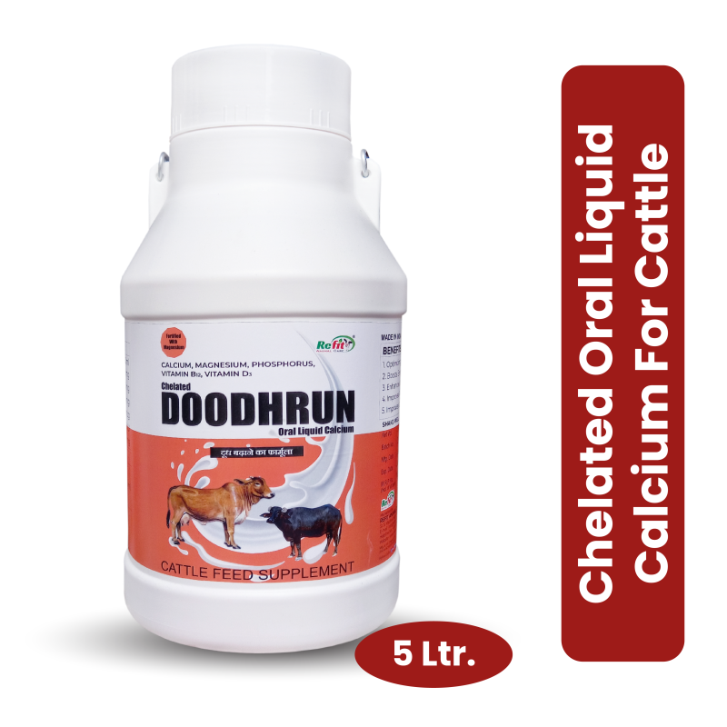 Chelated Liquid Calcium for Cows, Buffaloes, Goat, Sheep and Cattle, 5 Litre, Doodhrun
