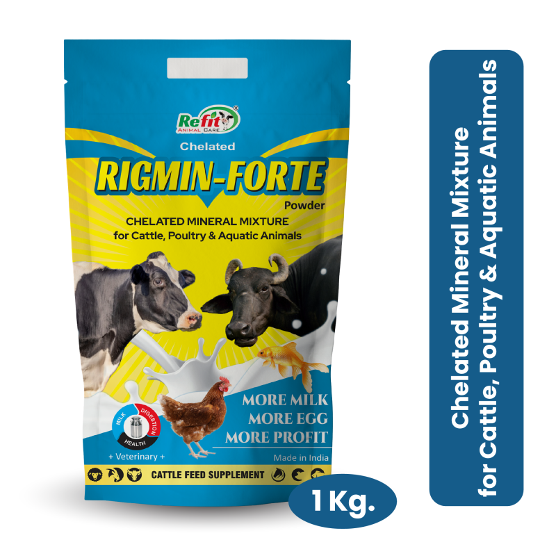 Chelated Mineral Mixture for Cow, Cattle, Buffalo, Goat, Chicken, Broilers, Poultry and Other Livestock Animals, 1 kg Pouch, Rigmin Forte