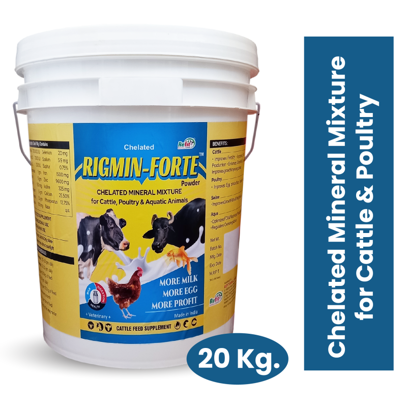 Chelated Mineral Mixture for Cow, Cattle, Buffalo, Goat, Chicken, Broilers, Poultry and Other Livestock Animals, 20 kg Bucket, Rigmin Forte