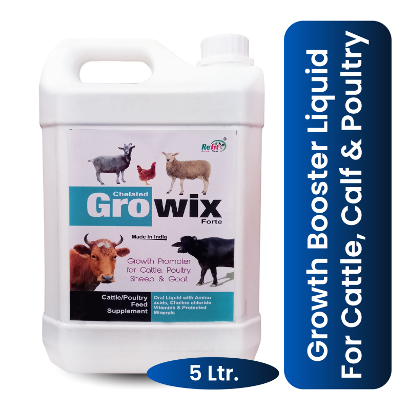 Growth Promoter for Cow, Cattle, Goat, Buffalos, Poultry and Livestock, 5 LTR, Growix Forte