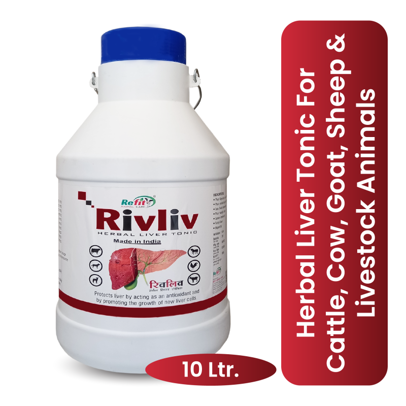 Herbal Liver Tonic for Cow, Cattle, Buffalo, Goat, Poultry, Livestock and Other Farms Animal, 10 Liter, Rivliv