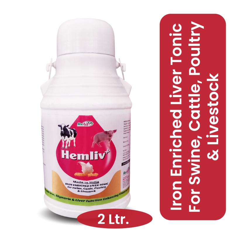 Iron Enriched Liver Tonic Supplement for Cow, Cattle, Poultry and Other Livestock, 2 Litre, Hemliv+