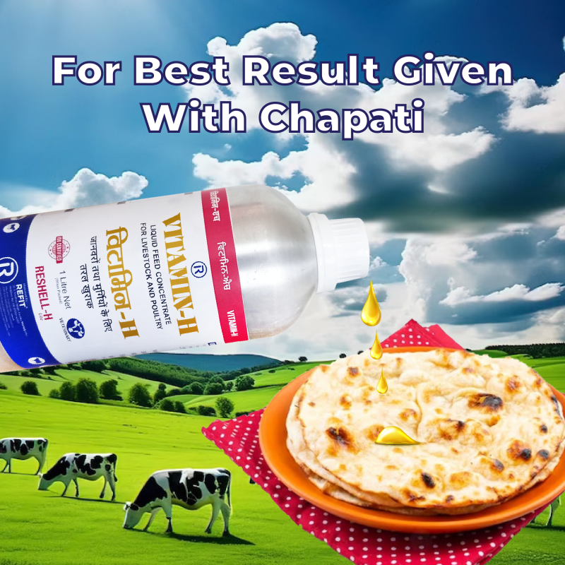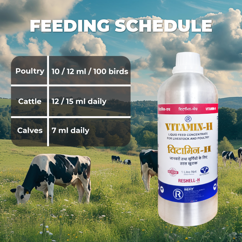 itamin H Supplement for Cow, Cattle, Buffalo, Goat, Chicks, Chicken, Poultry and Livestock Animals, 1 LTR, Reshell H Lite