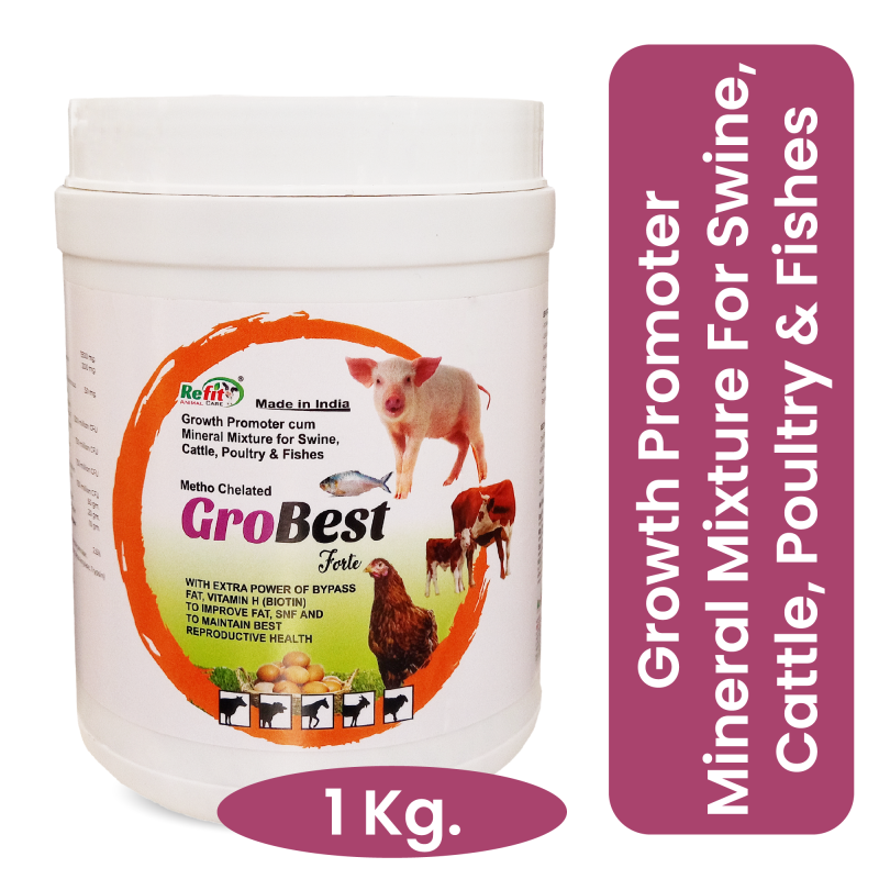 Metho Chelated Mineral Mixture Powder and Growth Promoter for Cow, Buffalo, Cattle, Poultry and Aqua, 1 Kg, Grobest