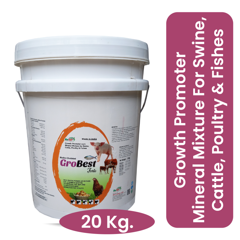Metho Chelated Mineral Mixture Powder and Growth Promoter for Cow, Buffalo, Cattle, Poultry and Aqua, 20 Kg, Grobest