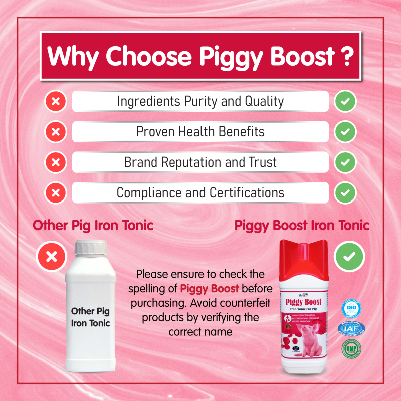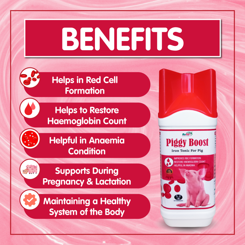 Piggy Boost Iron Tonic for Pigs | Improves RBC Formation, Restores Hemoglobin Count, Prevents Anemia, Supports Pig Health, Boosts Iron Levels - Perfect for Pig Devlopment, 1ltr