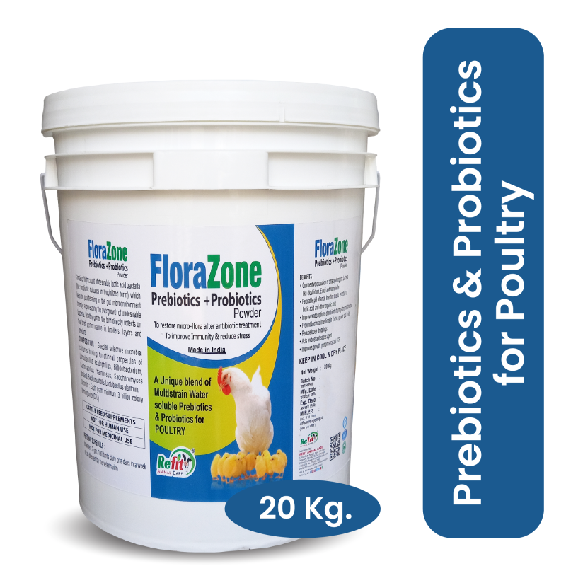 Prebiotics and Probiotics Powder for Poultry, Chicken, Hen, Chicks, Broilers and Birds, 20 Kg, Florazone