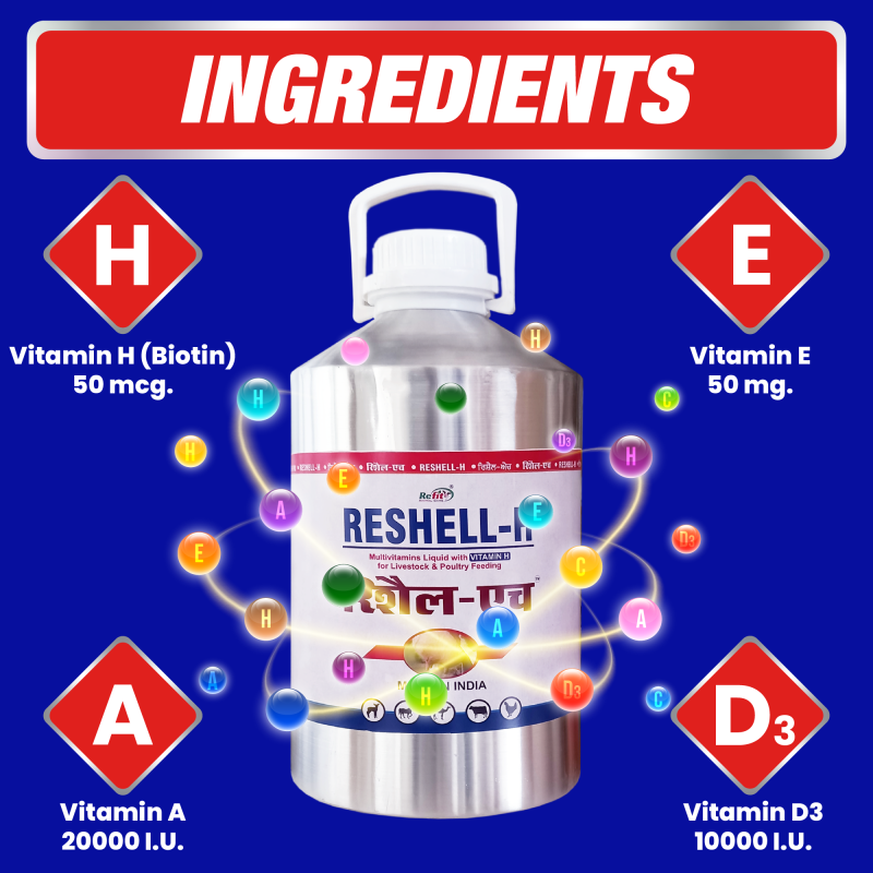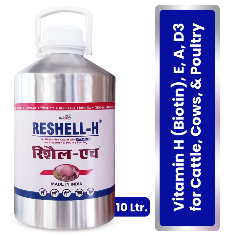 Veterinary Vitamin H Supplement for Cow, Cattle, Goat, Chicken, Layers, Broilers, Poultry and Other Livestock Animals, 10 LTR, Reshell H