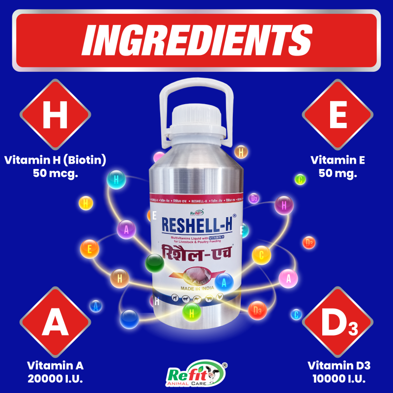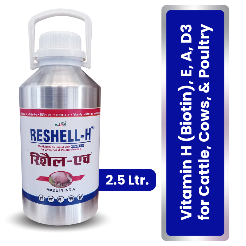 Veterinary Vitamin H Supplement for Cow, Cattle, Goat, Chicken, Layers, Broilers, Poultry and Other Livestock Animals, 2.5 LTR, Reshell H