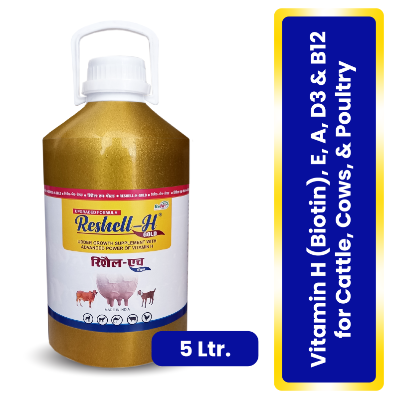 Veterinary Vitamin H Supplement for Cow, Cattle, Goat, Chicken, Layers, Broilers, Poultry and Other Livestock Animals, 5 LTR, Reshell H Gold