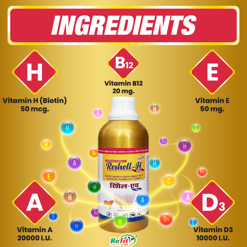 Veterinary Vitamin H Supplement for Cow, Cattle, Goat, Chicken, Layers, Broilers, Poultry and Other Livestock Animals, 500 ml, Reshell H Gold